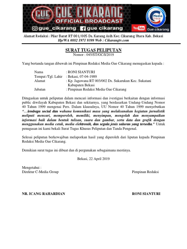 Surat Tugas Peliputan Pdf